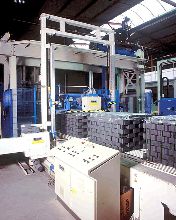 Wiązarki automatyczne do pakowania kostki brukowej – bezobsługowe wiązanie wyrobów wibroprasowanych.